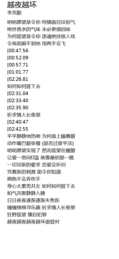 | [03:58.60][02:42.55][02:23.52][01:21.82] | 越夜越夜越夜越坏很登对 |