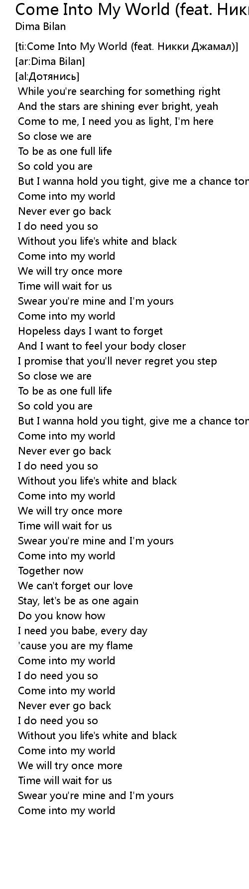 | [ti:Come Into My World (feat. Никки Джамал)] | |