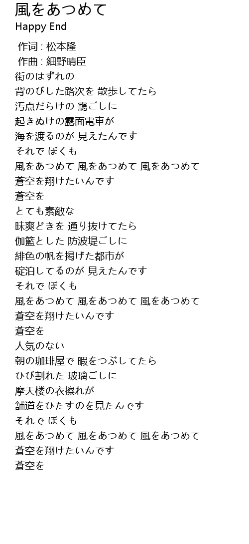 風をあつめて 風をあつめて 風をあつめて |