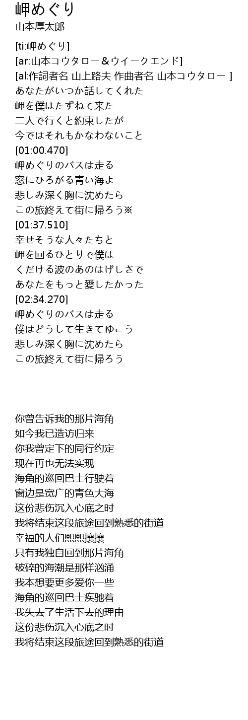 | [01:27.960] | この旅終えて街に帰ろう※ |