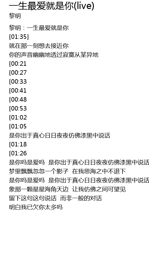 | [00:00] | li ming: yi sheng zui ai jiu shi ni |