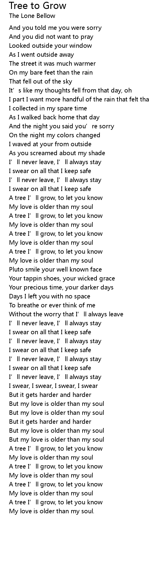 | Song | Tree to Grow |