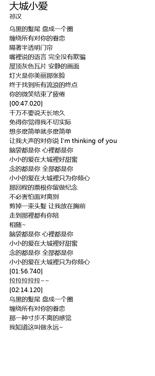 | [01:47.100] | 小小的爱在大城裡好甜蜜 |