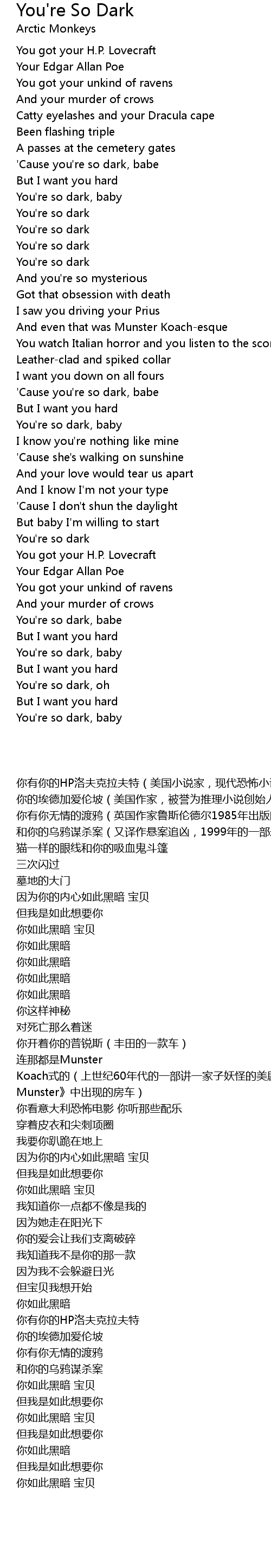 You're So Dark Lyrics