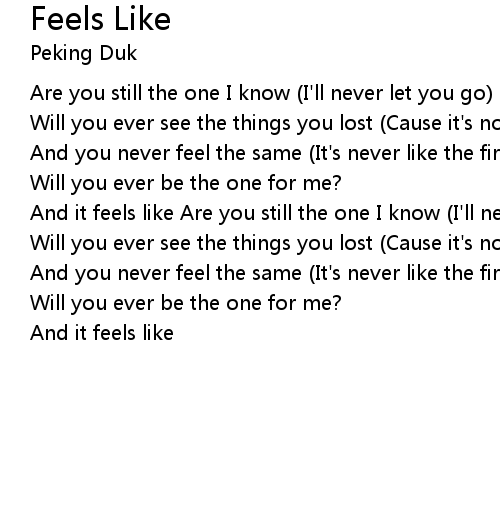 | And it feels like Are you still the one I know (I'll never let you go) | |