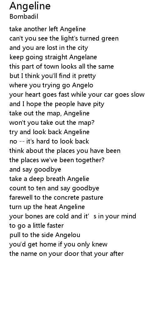 | take another left Angeline | |