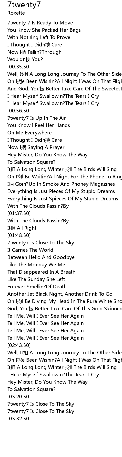 | [03:21.50] | 7twenty7 Is Close To The Sky |