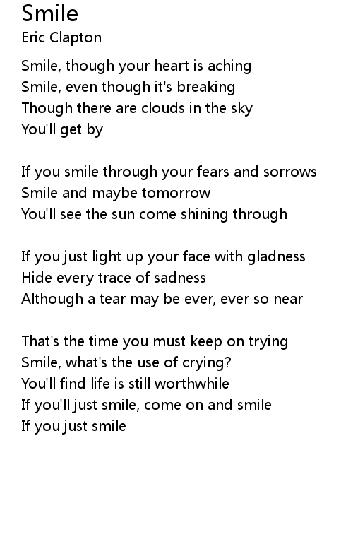 Smile, though your heart is aching |