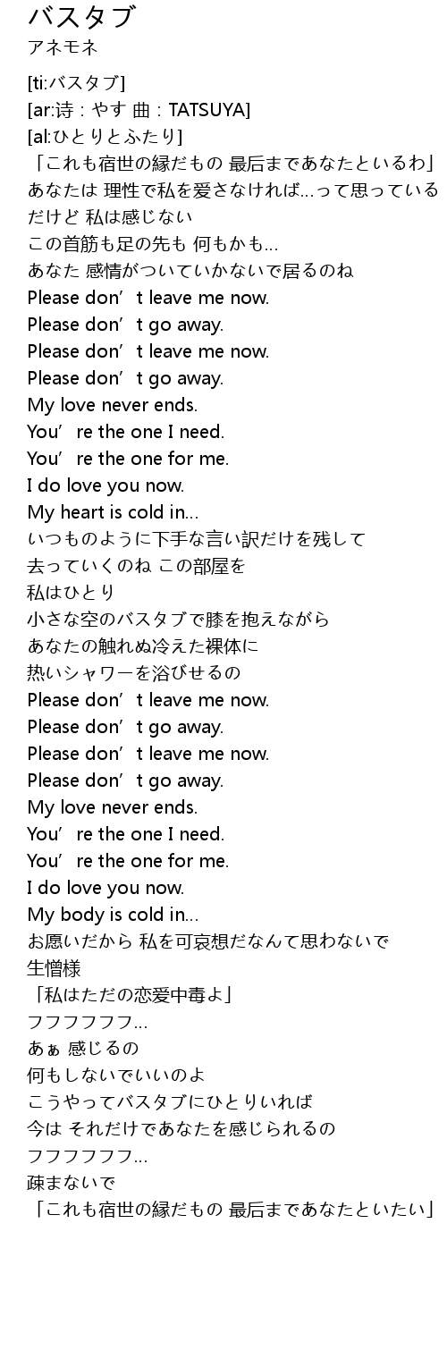 | [01:21.00] | Please don' t leave me now. |