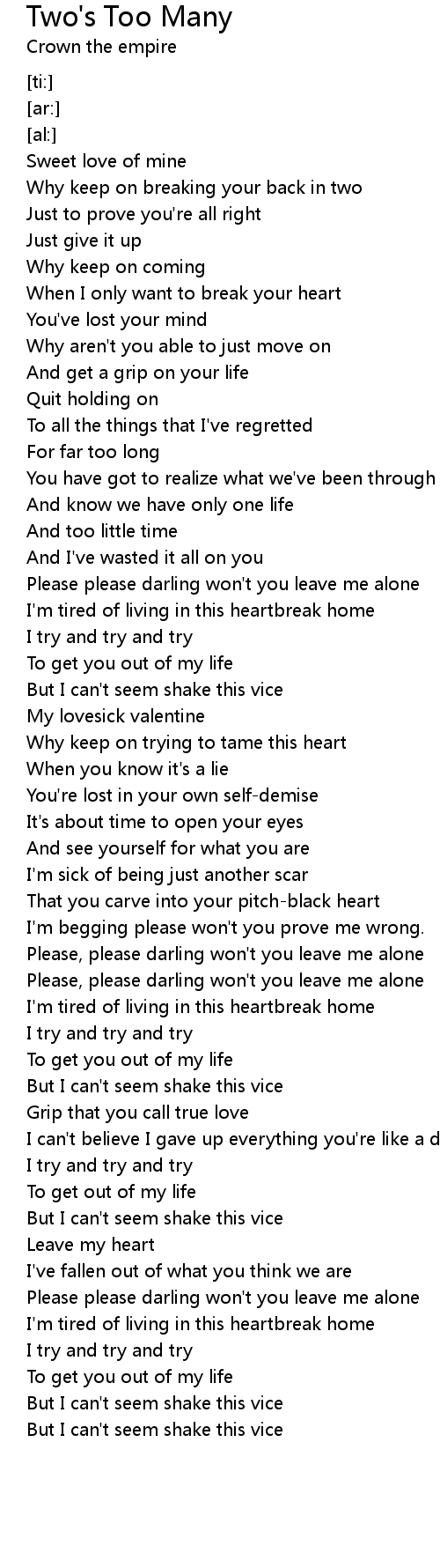 Two's Too Many Lyrics