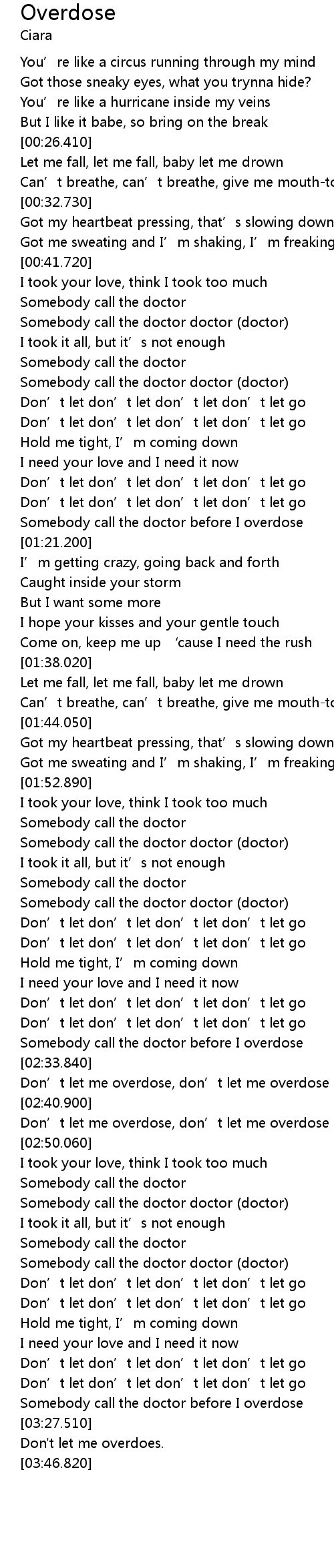 | [02:37.820] | Don’t let me overdose, don’t let me overdose |