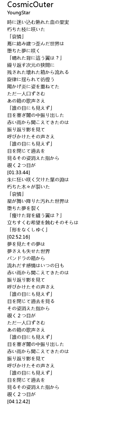 | [00:14.10] | 時に迷い込む熟れた血の果実 |