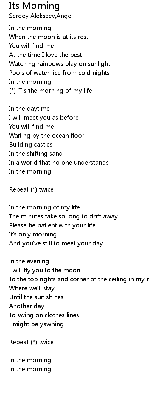 In the morning of my life |