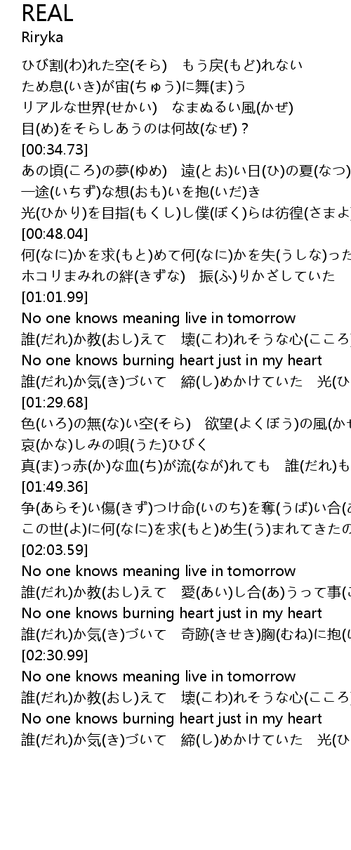| [01:03.29] | No one knows meaning live in tomorrow |