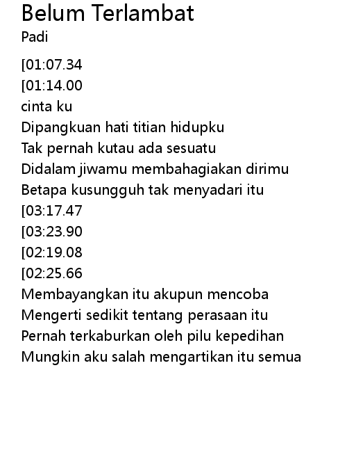 Dan belum terlambat utk menumbuhkan cinta ku |