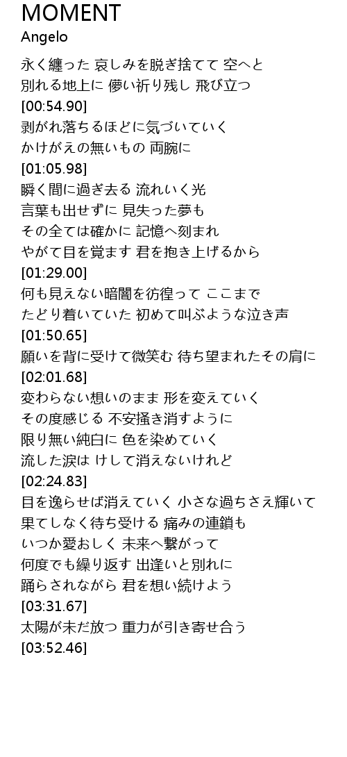 | [01:51.37] | 願いを背に受けて微笑む 待ち望まれたその肩に |