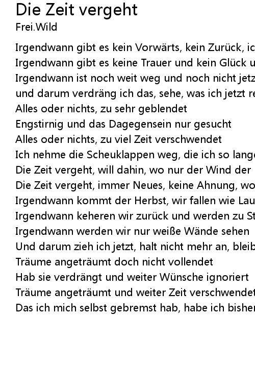 | Die Zeit vergeht, will dahin, wo nur der Wind der Freiheit weht | |