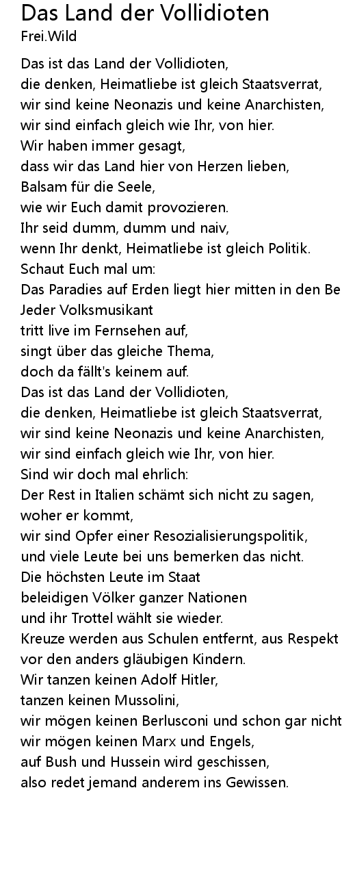 | die denken, Heimatliebe ist gleich Staatsverrat, | |