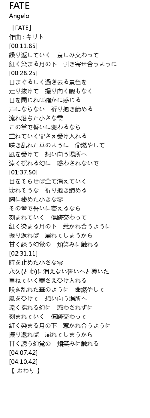 | [00:13.85] | 繰り返していく 哀しみ交わって |