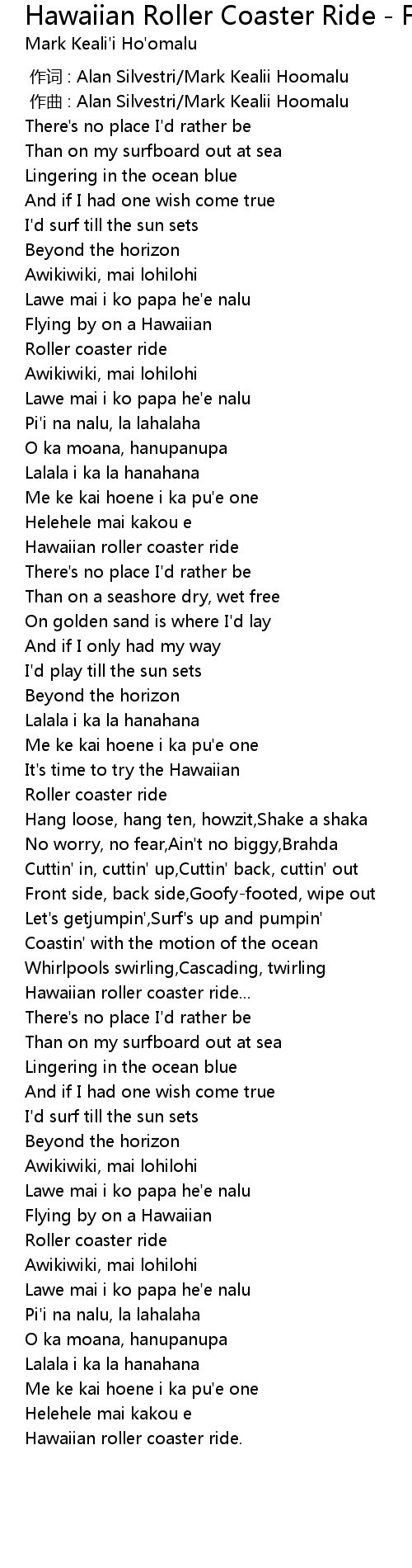 | [01:47.00] | Hawaiian roller coaster ride... |