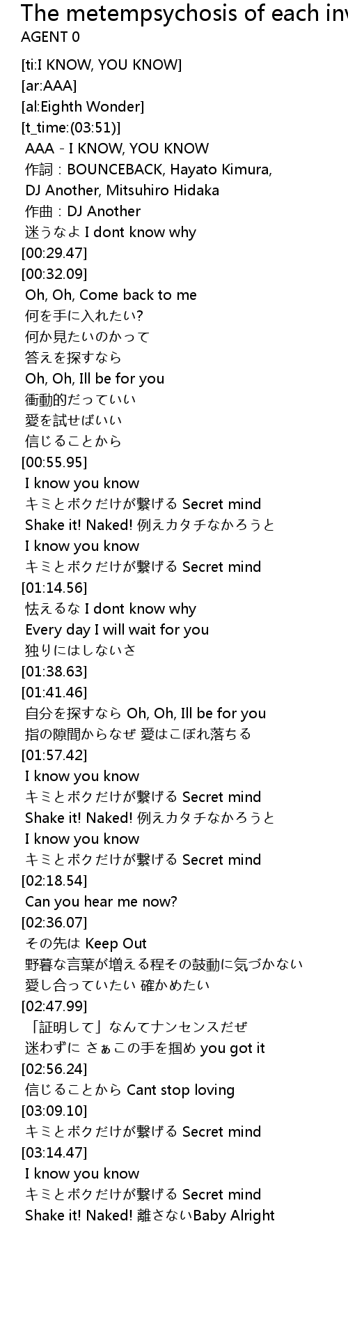 | [00:00.00] | AAA I KNOW, YOU KNOW |