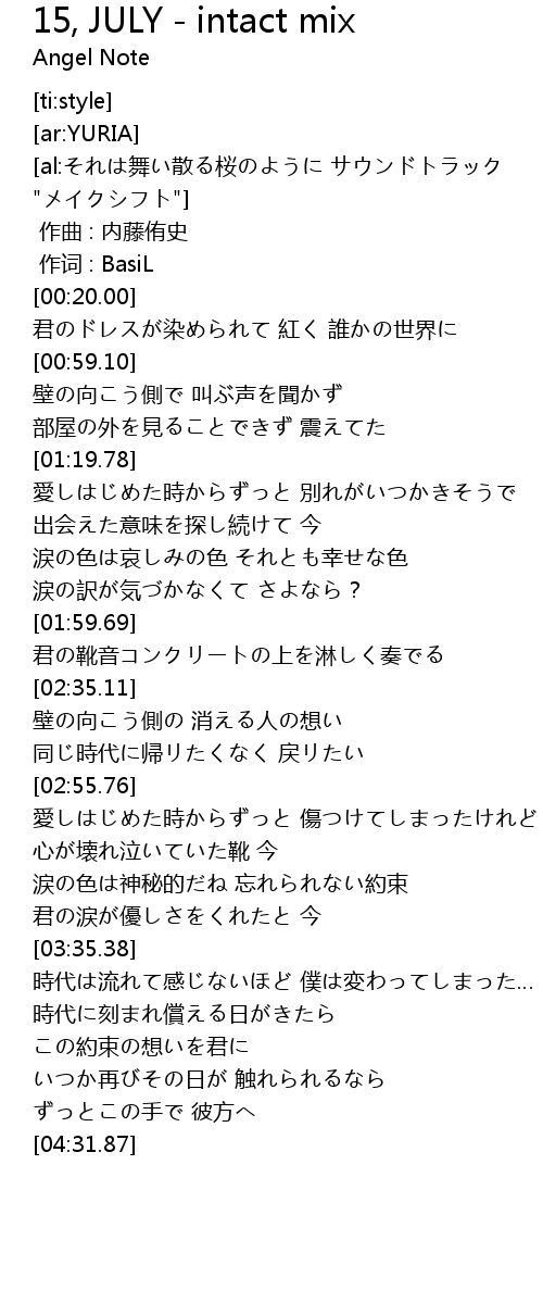| [04:16.71] | いつか再びその日が 触れられるなら |