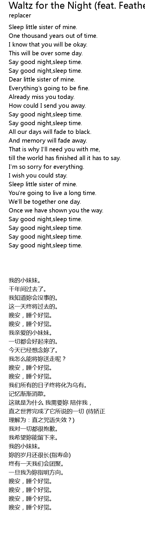 [02:09.21] Dear little sister of mine.