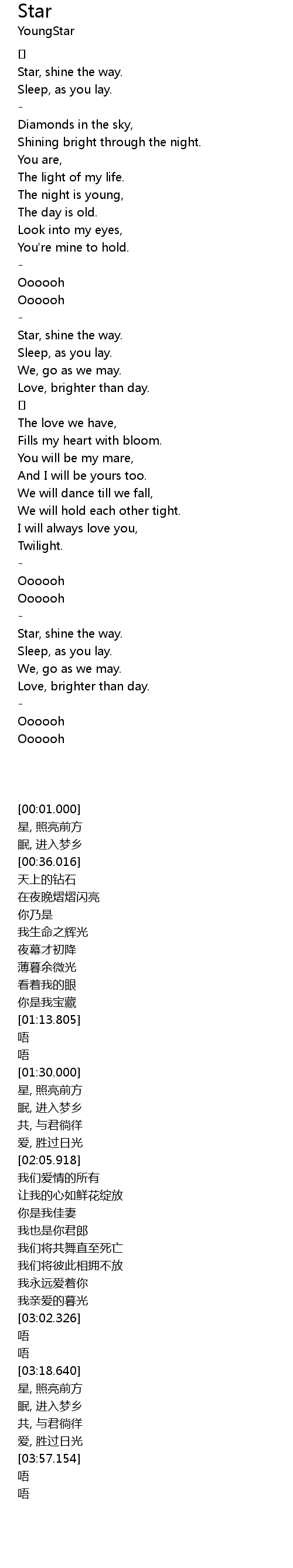 | [03:21.000] | Star, shine the way. |