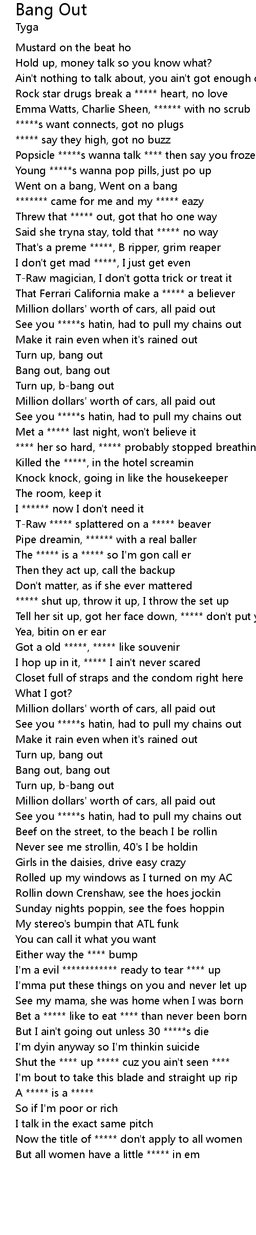 Bang out, bang out |