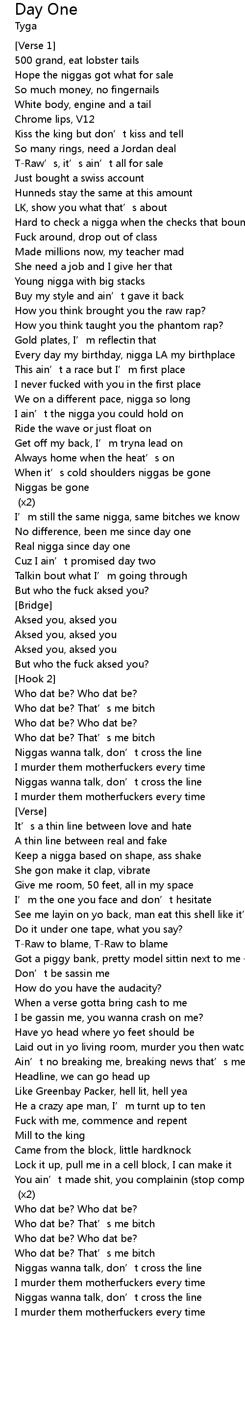 | Real nigga since day one | |
