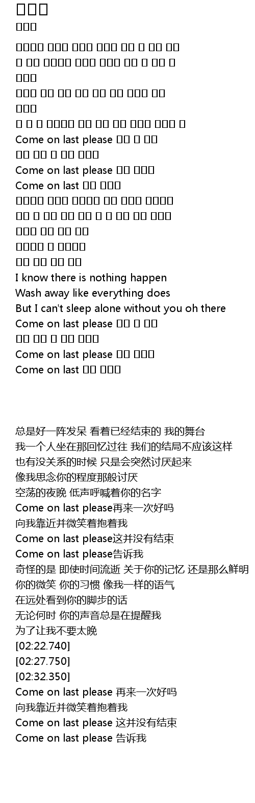 | [02:59.380] | Come on last please 다시 한 번만 |