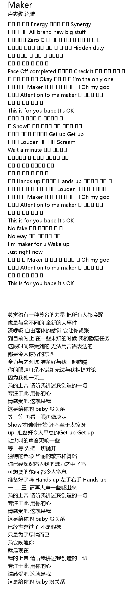 | [01:57.00] | Maker Oh my god |