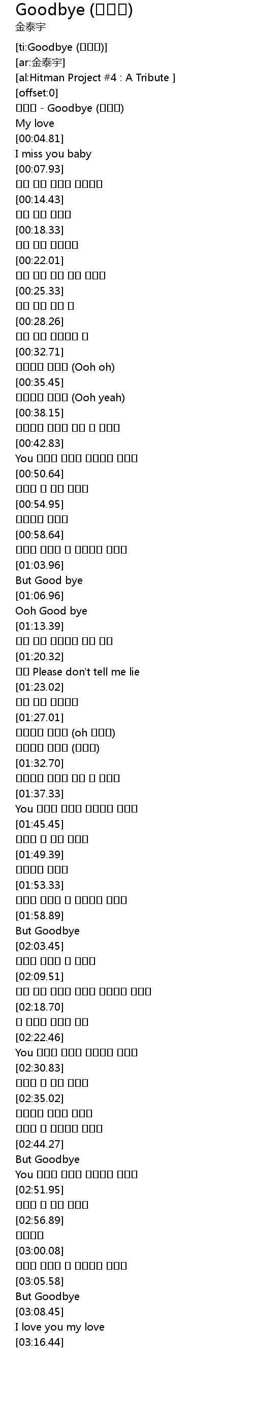 | [00:00.68] | 김태우 - Goodbye (굿바이) |