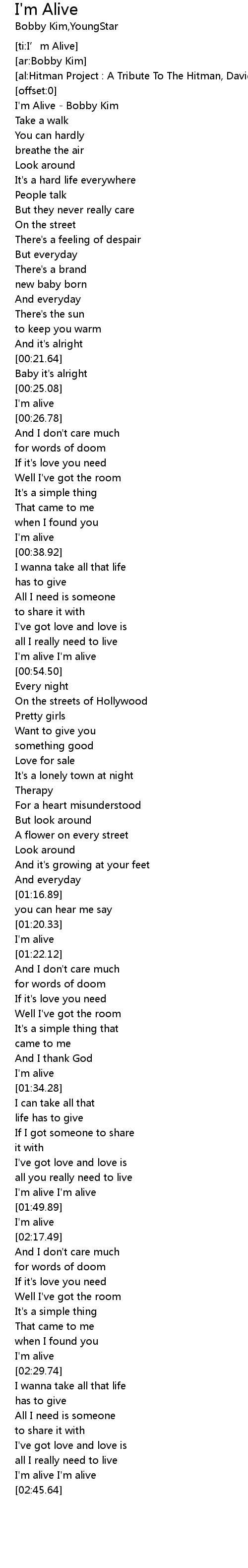 | [00:00.37] | I'm Alive - Bobby Kim |