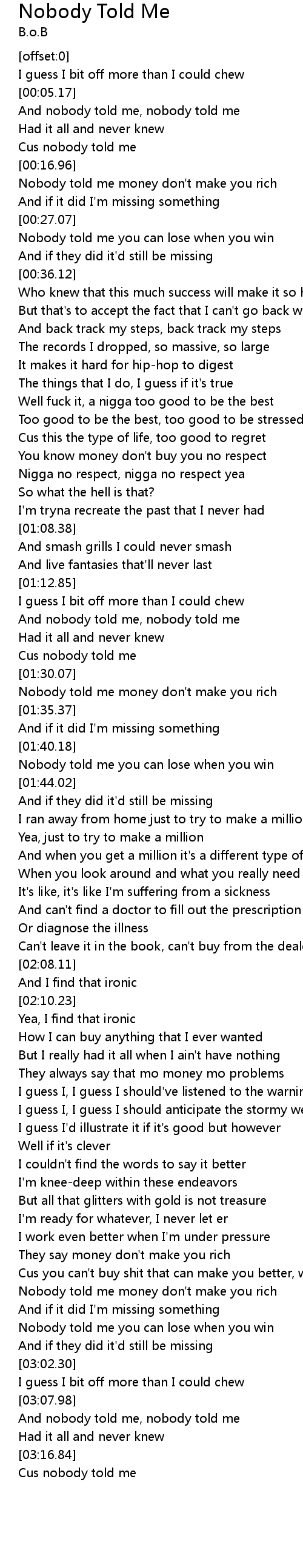Nobody told me money don't make you rich |