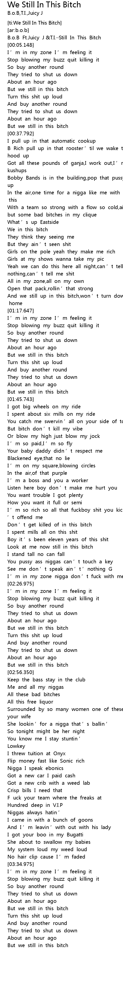 | [00:03.25] | B. o. B Ft. Juicy J T. I. Still In This Bitch |