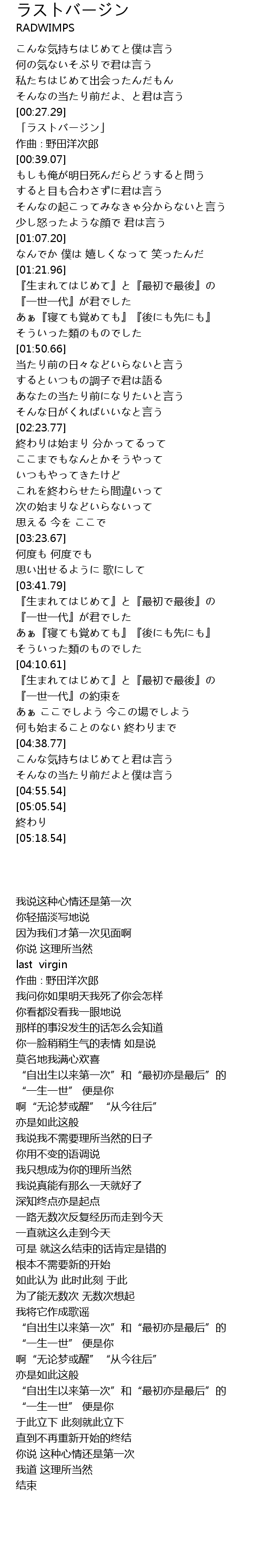 | [00:35.07] | 作曲∶野田洋次郎 |