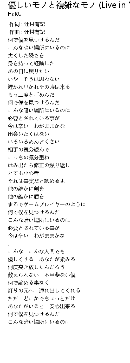 | Song | 優しいモノと複雑なモノ (Live in "wonderland") |