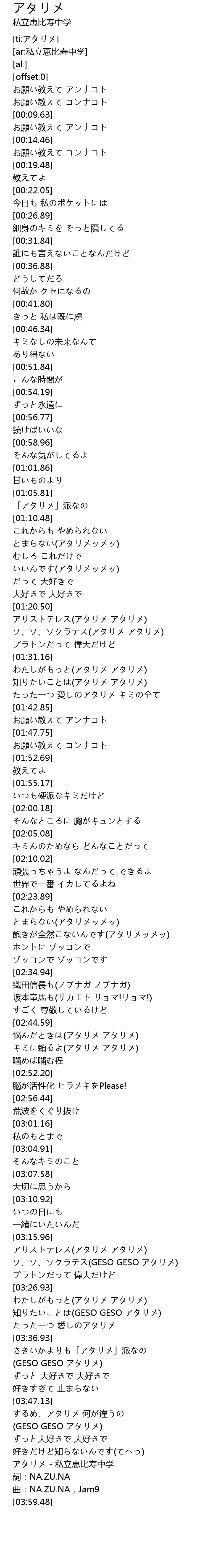 | [03:59.48] | qū: NA. ZU. NA, Jam9 |