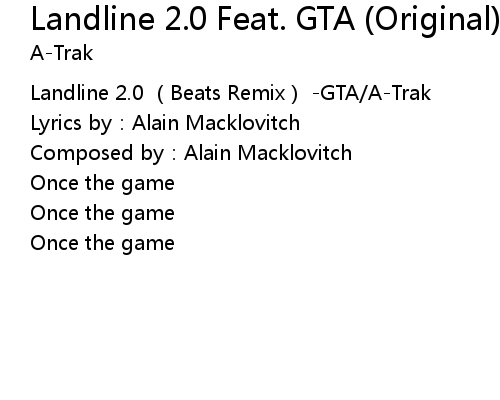 | [00:00.60] | Landline 2. 0 Beats Remix GTA ATrak |