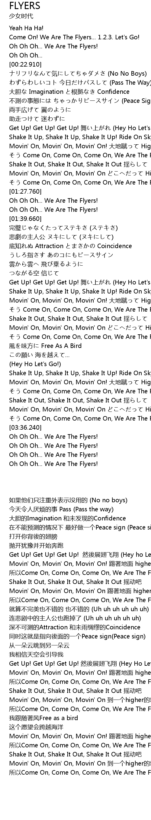 | [02:30.070] | そう Come On, Come On, Come On, We Are The Flyers! |