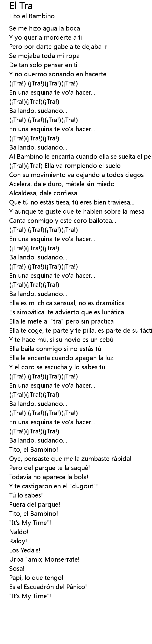 | [00:32.53] | (¡Tra!) (¡Tra!)(¡Tra!)(¡Tra!) |