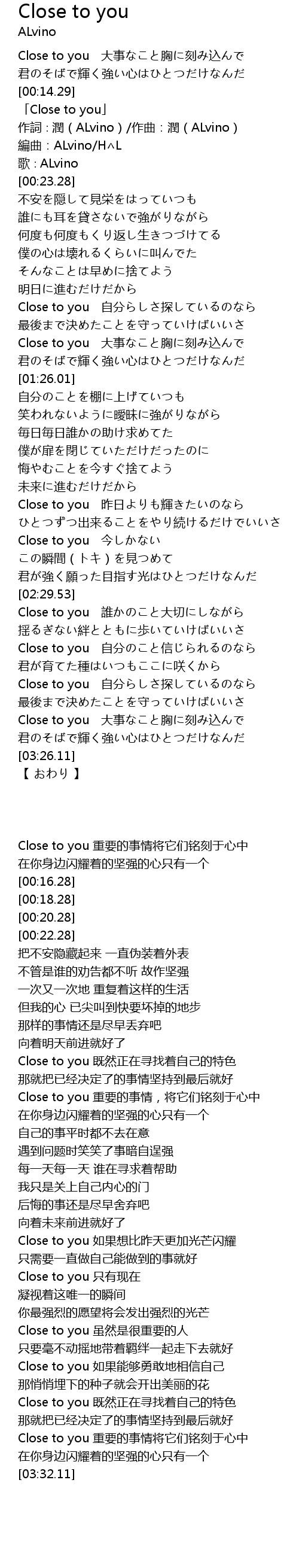 | [00:16.28] | 「Close to you」 |
