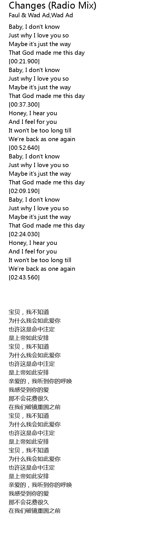 | [02:10.500] | Baby, I don't know |