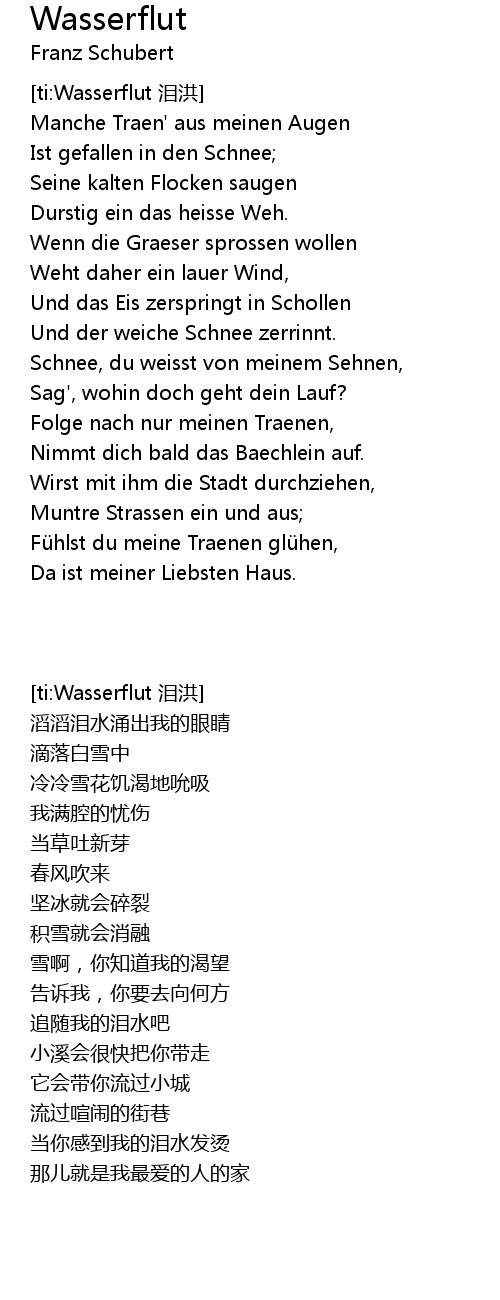 | [01:55.27] | Schnee, du weisst von meinem Sehnen, |