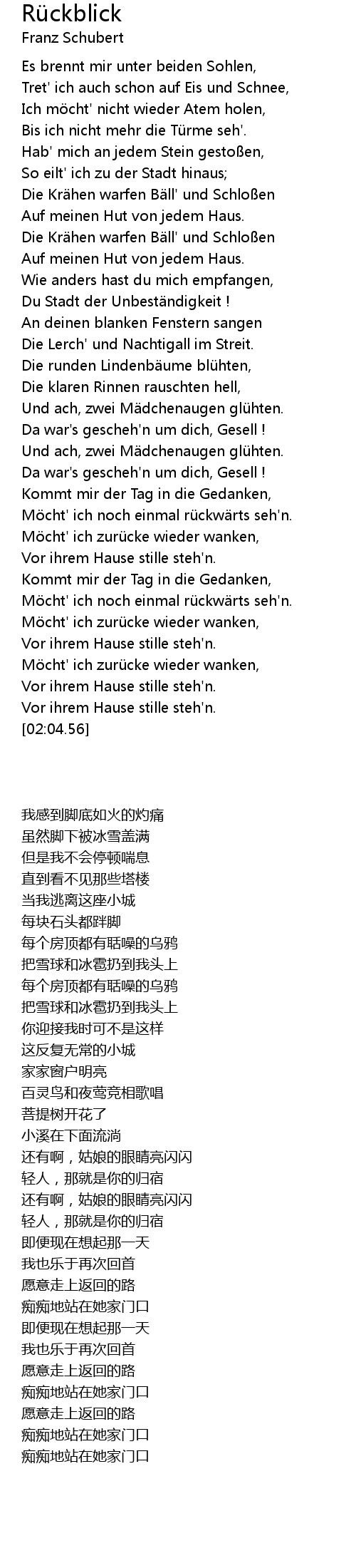 | [00:53.21] | An deinen blanken Fenstern sangen |