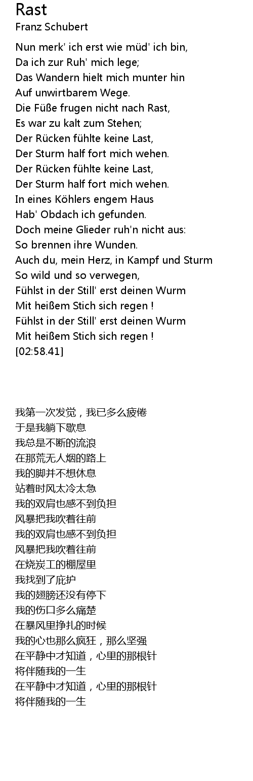| [02:02.00] | Doch meine Glieder ruh' n nicht aus: |