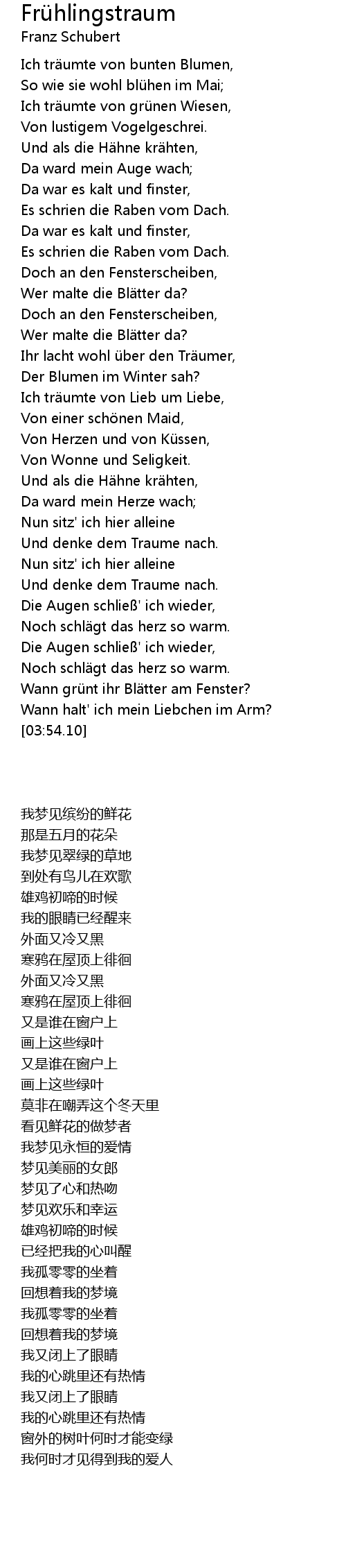 | [03:14.17] | Die Augen schlie' ich wieder, |