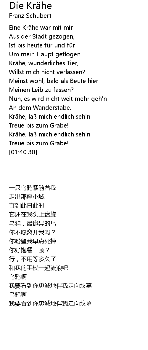 | [01:24.33] | Krähe, laß mich endlich seh'n |