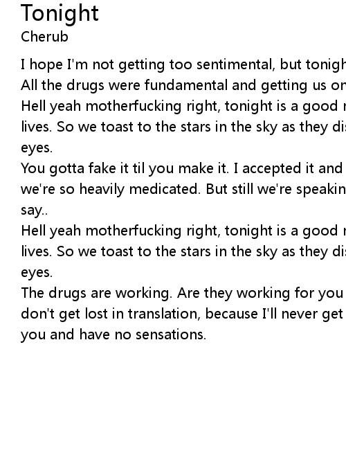 | I hope I'm not getting too sentimental, but tonight might be something special. All the drugs were fundamental and getting us on the level. So we say.. | |